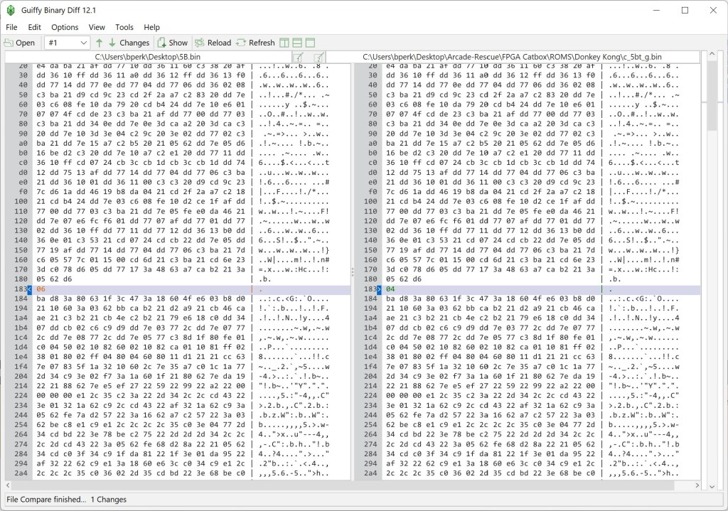 At this point I was finally able to test ROMs – the ROM@5B tested bad.. I downloaded and compared.