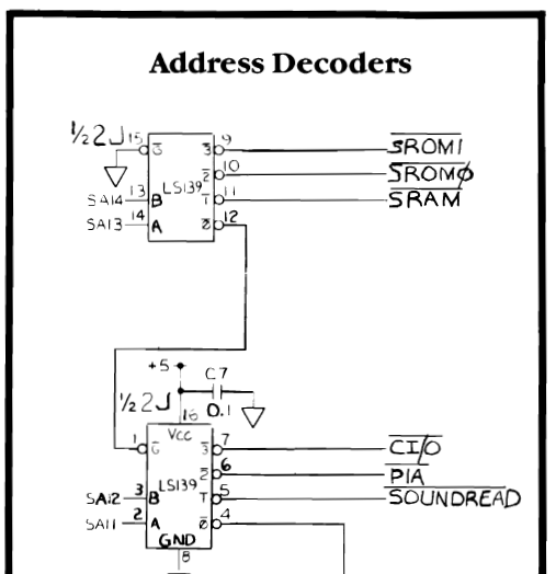 This made me do board maintenance, cleaning chip legs, Deoxit, etc.. Once done – I narrowed the cause the the 68B09 CPU which was corrupting SA3 (sound address bus bit3) until it warmed up. Took a while to find because it self cleared and I had to power down, wait for the chip to cool, then retest to verify that the CPU was the cause.