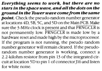 Star Wars can run all of the diagnostics without the interrupt circuit working. In normal game mode – interrupts need to work.