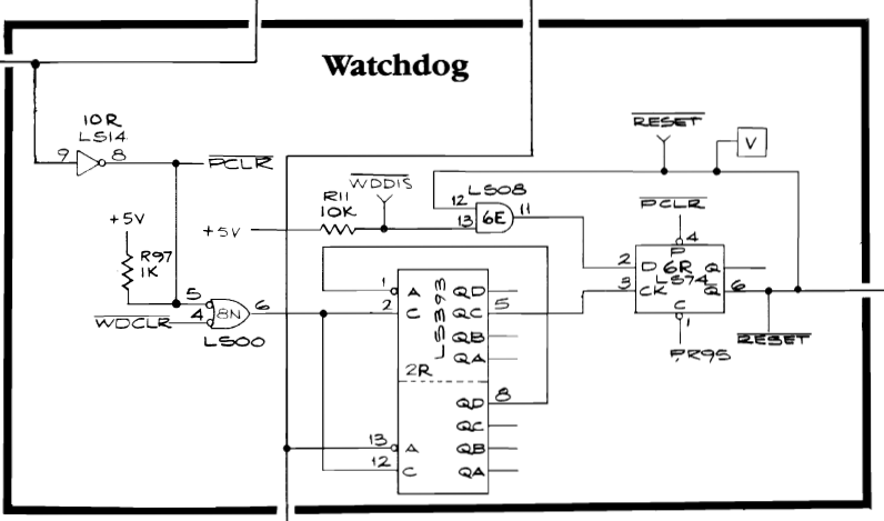 There is a lot going on there – but part of the issue with the interrupt timer was LS393@2P – same date code as the LS393@2R that killed the reset circuit.