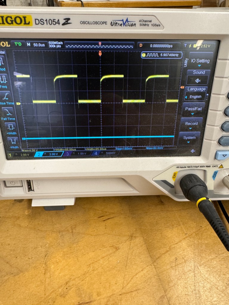 Frequency out of the bad one ~6kHZ.. Should be ~3kHZ. Now that it was running at the correct speed – STILL no interrupts getting to the CPU to allow the game code to run.. IRQCLR LS74@2M was pinned low…