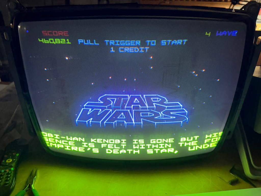 I was very fortunate to pick up a Star Wars locally for a great price. It was reported as ‘it worked sometimes’ from the owner. He had it for nearly 20 years and his kids were not interested. He wasn’t a collector and decided it was time for it to move on.. I was lucky and beat over 20 people who wanted it. Original Amplifone monitor and all matching serial numbers. Cab is in A-/B+ condition.