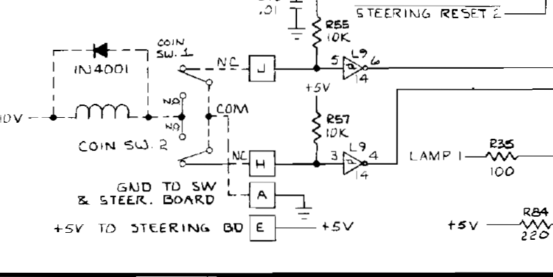 Early coin switches. On Sprint 2 it is normally closed AND pulled up to 5v+. I had connected a micro switch to Coin1.. But didn’t do anything with Coin2.. After jumping Coin2 to 5v+..