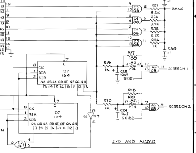 A fun quirk of these early games.. No skid sound for just the black car – replacing 74279@H6 – fixed it.. The white car had the skid sound. The big power resistor broke along the way – replaced it.