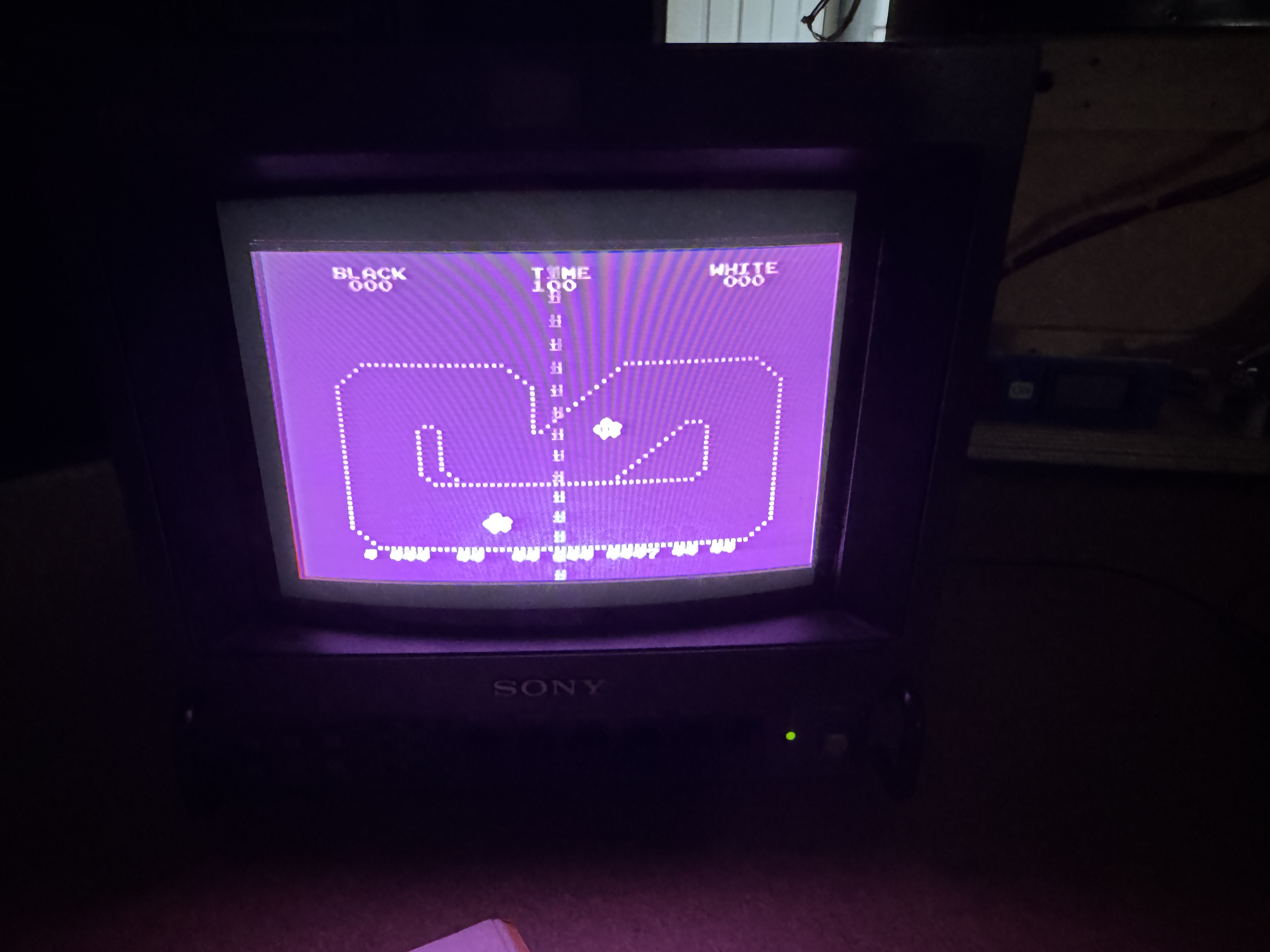 Trying to get the game to boot – that did not work. Even with RAM/ROM verifying. I could get this screen and a set of stacked cars that would blink down the center of the screen.