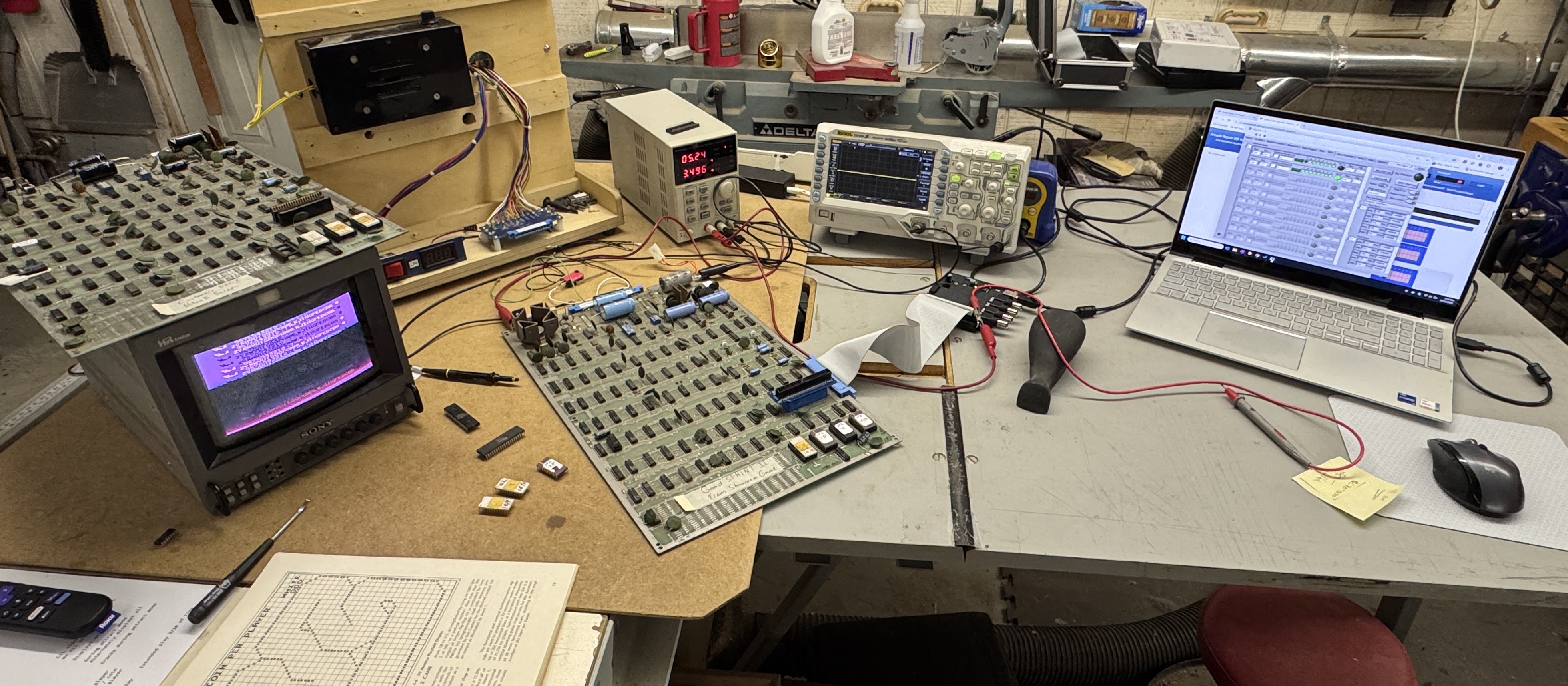 A repair shop that I’ve done some work for asked me if I would take a look at Sprint 2. I’ve only worked on a few bronze age games. One thing about them is you can see how the golden age games evolved from the earlier ones. Ex: All of the power conversion and regulation happens on these early boards. Atari creating the ARI and the ARII did a couple of things.. removed a common failure point (power) from the logic board and freed up real estate for more game logic. There are a number of things like this I noticed and a number of ‘experience points’ gained.