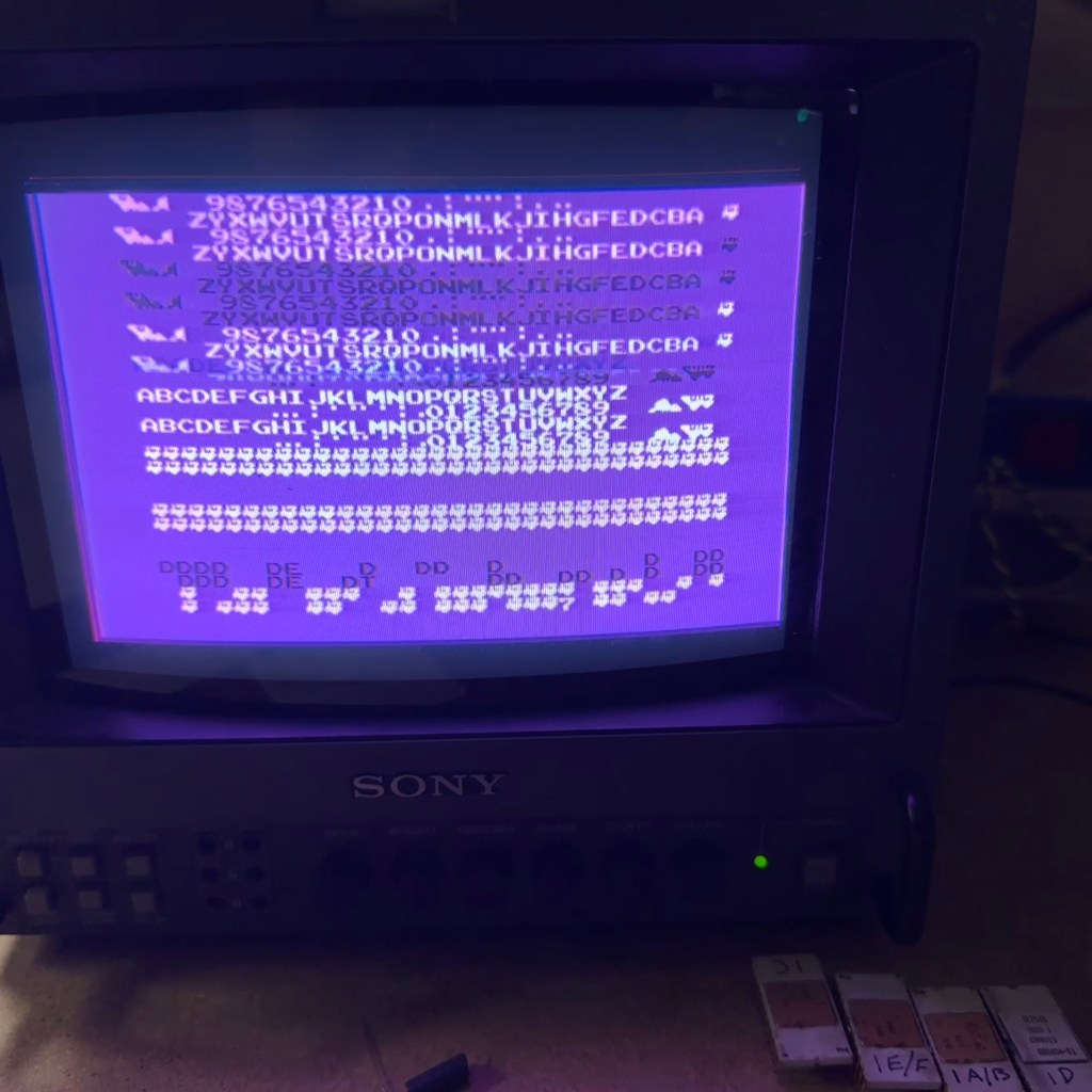 Figuring out this board took the majority of the time as almost every new board (to me) does.. I was able to create a Tester config that could verify the RAM and the ROM. The lower half of the RAM appears to be mapped/used differently. The D7 bit never verifies on the lower half of memory. All of the boards behave the same in this respect. Using the sequential test I could get the ascii characters to display full screen.
