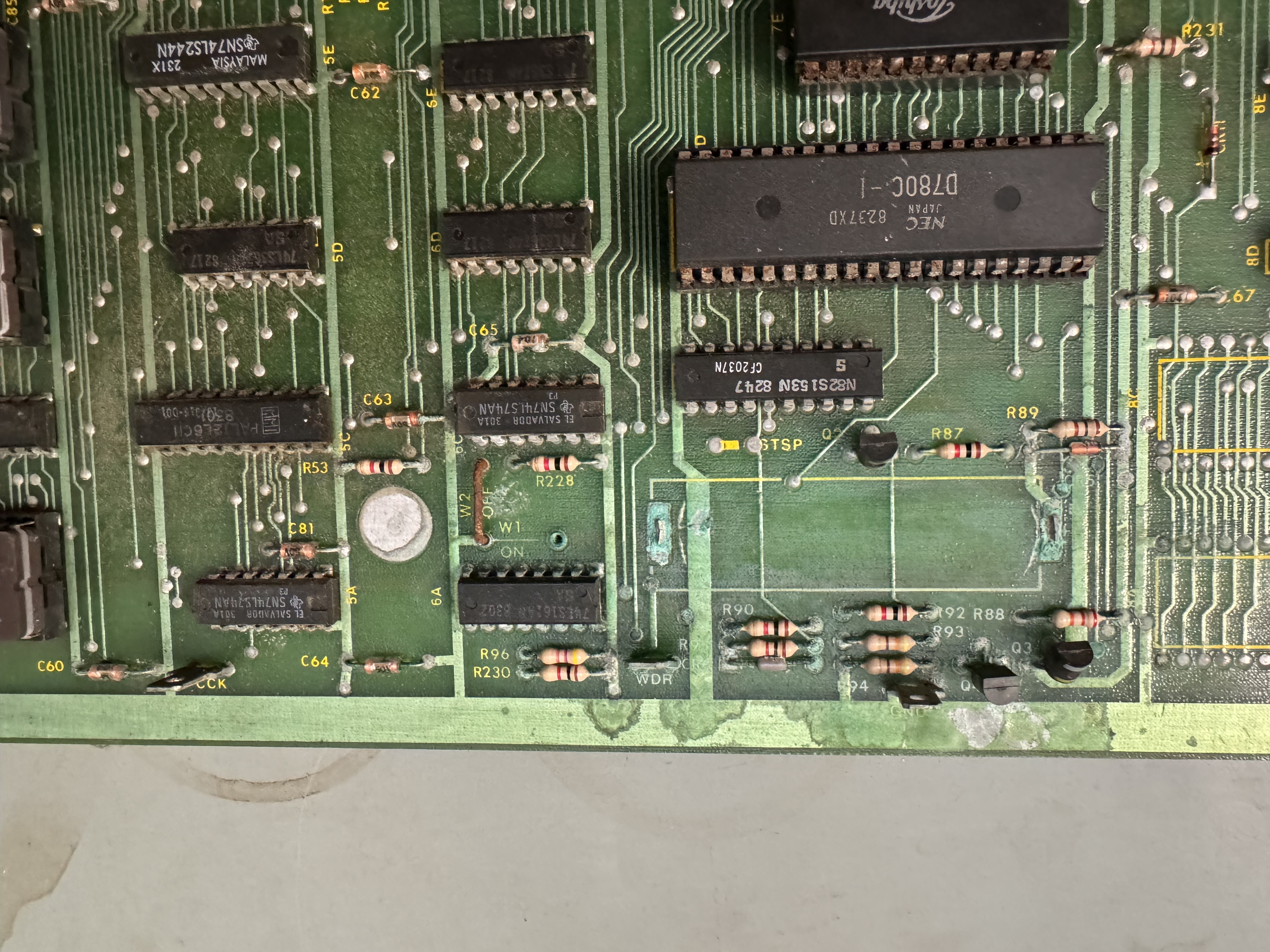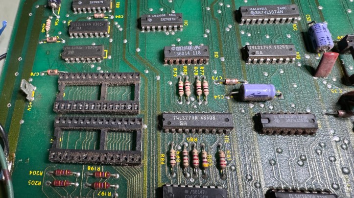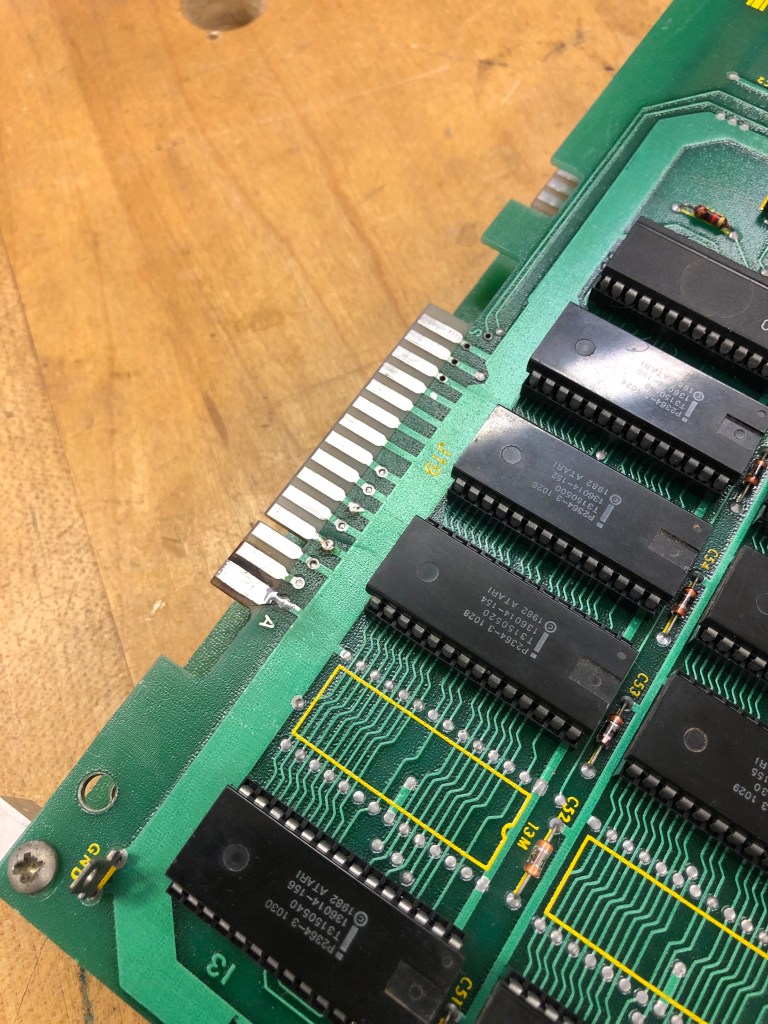 Between this board and the video board – cleaning all the chips, verifying all the ROM and RAM, etc. Nearly 4 hours total with cleaning up of alkaline damage.