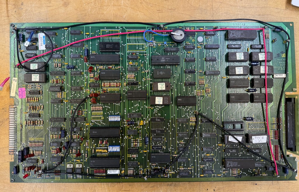 This is the cleanest Pole Position I’ve ever seen. At some point very early in its life, someone removed the battery and put a lithium battery in its place. It still reads 3.6v. There is no battery damage.
