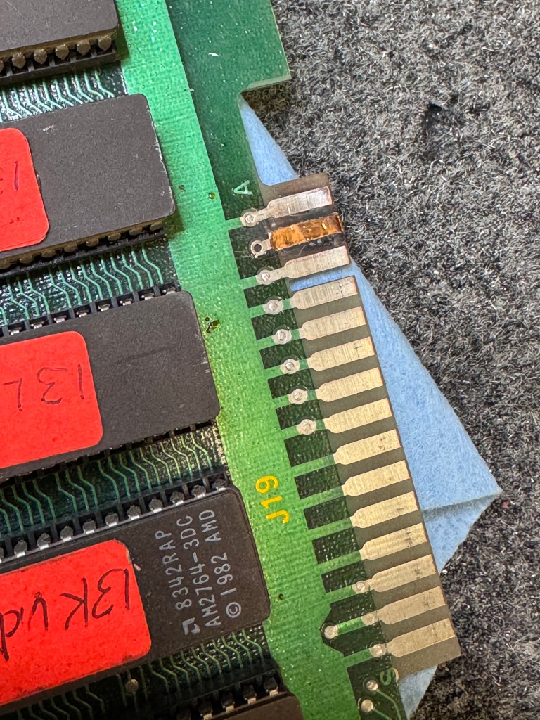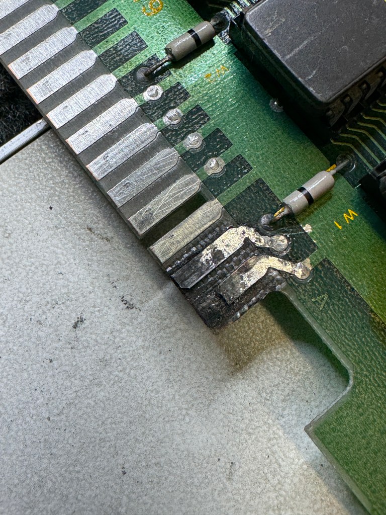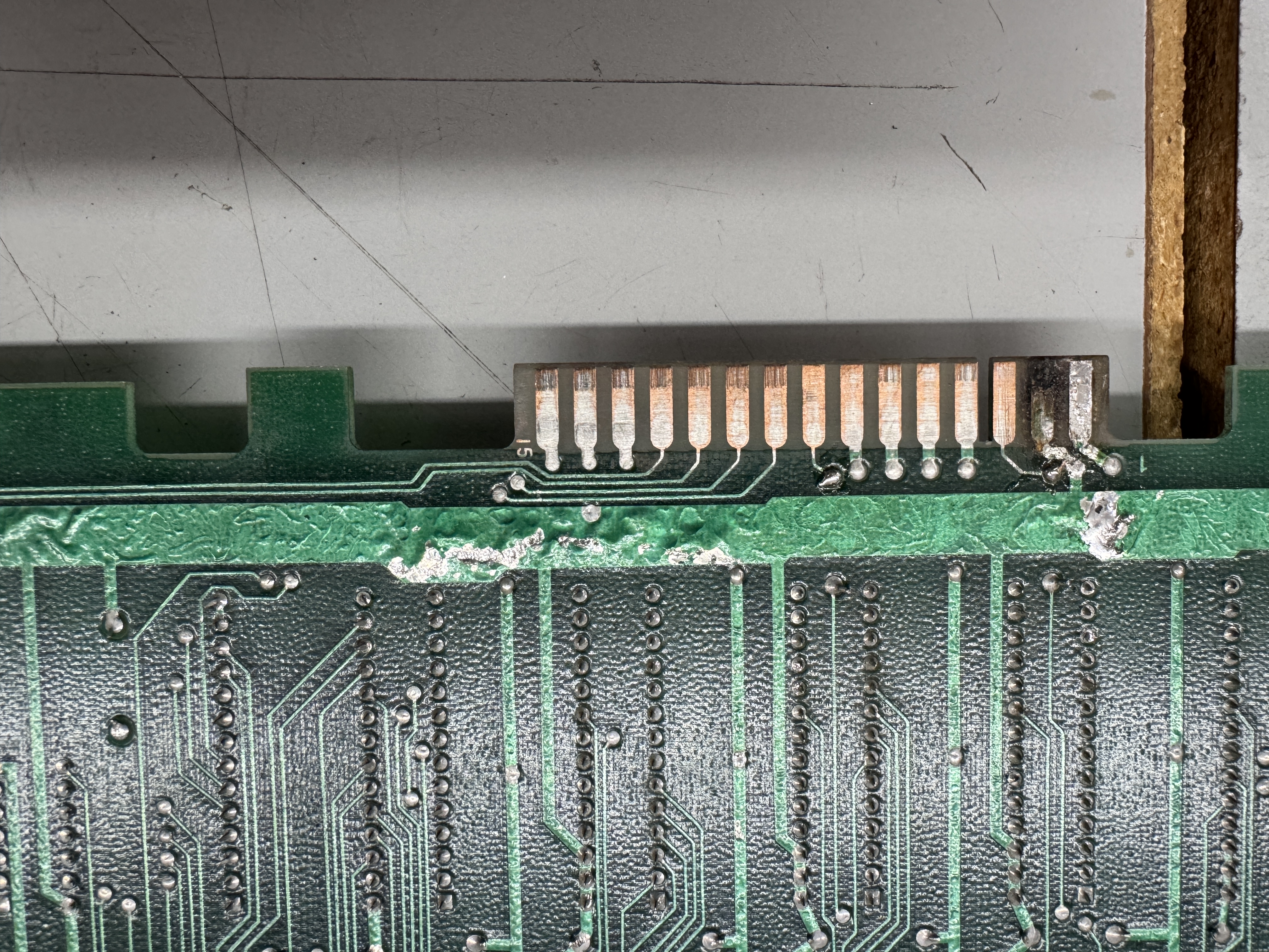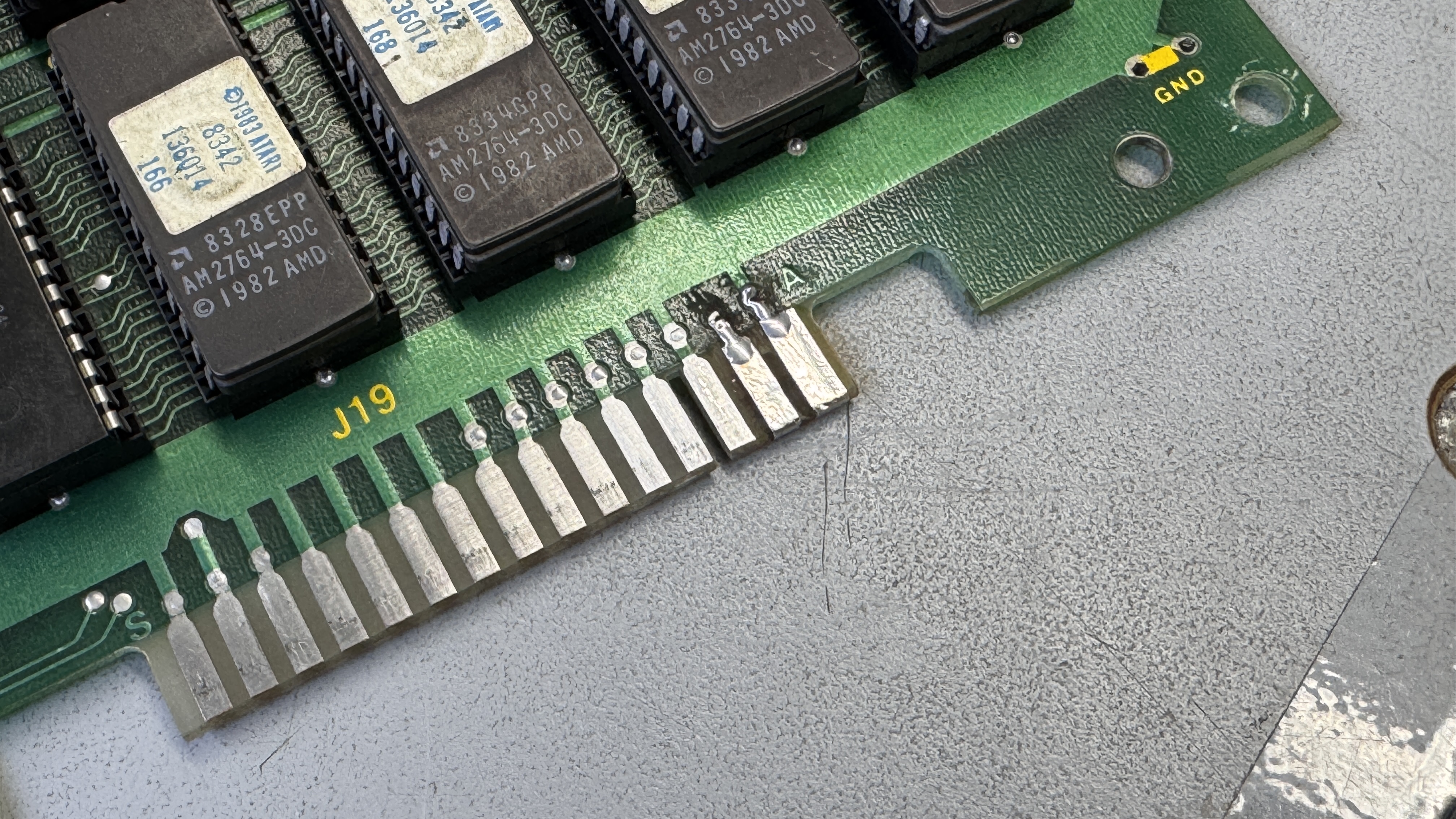 On to the CPU board. I wanted to clean up the edge connector repairs.. I’m sure they worked, but they were extra thick. After removing the bad ones..