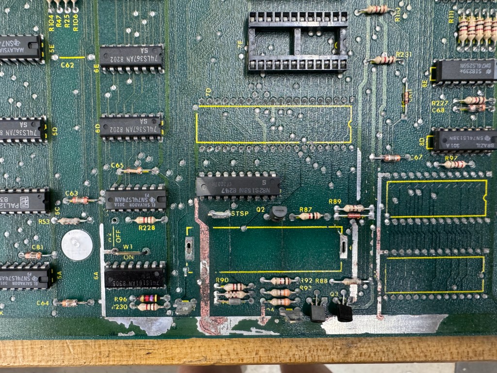 Right out of the gates – ROM 182 and ROM 106 were bad. Many of the CPU board chips had broken legs and were rotted.