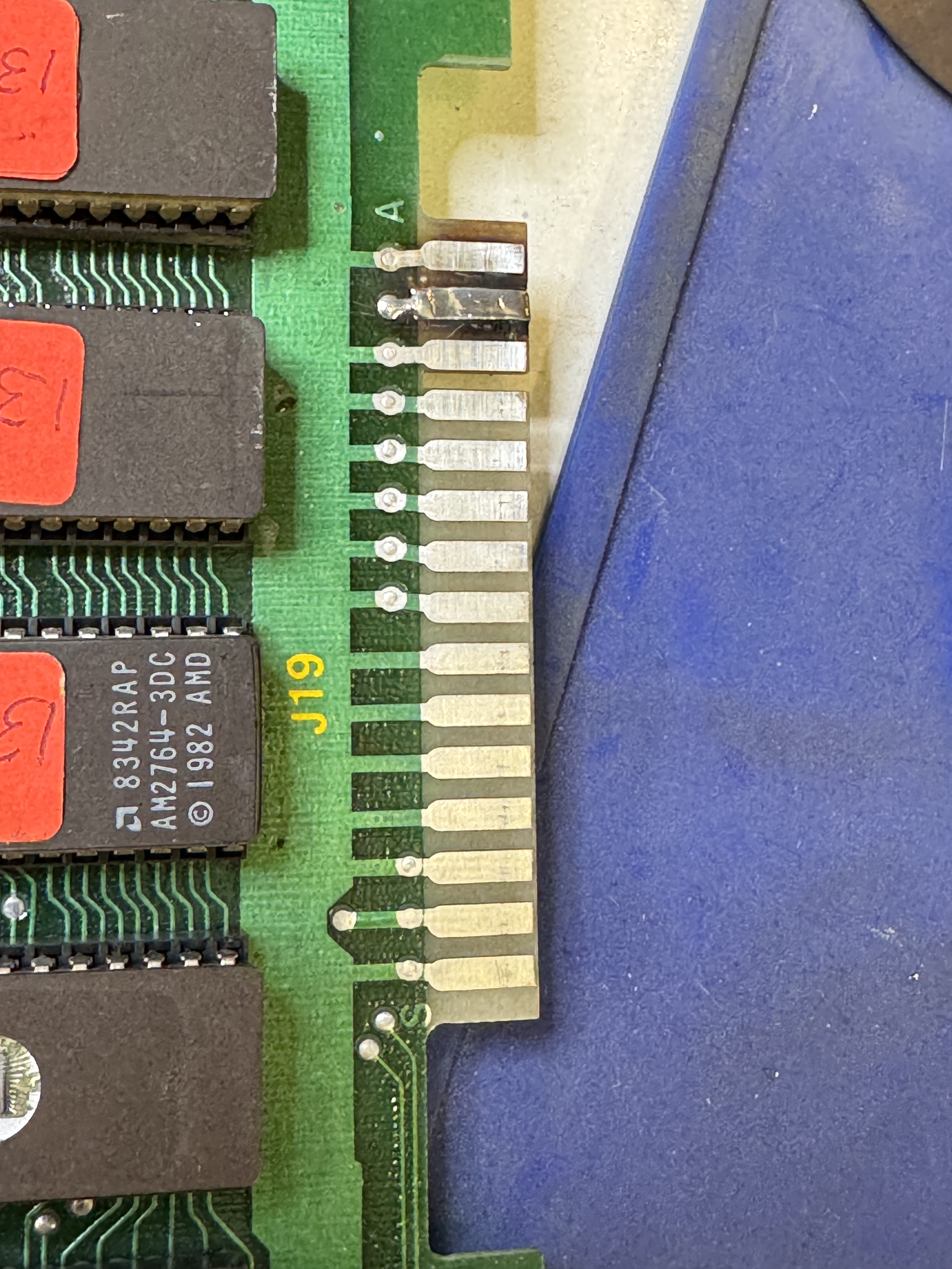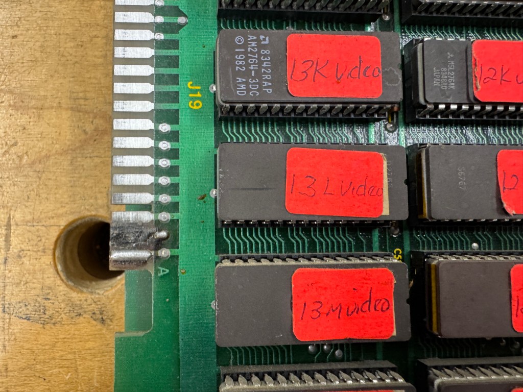 It visually had a number of issues – but the edge connectors were in reasonable condition. I removed all the socketed chips and verified all of the EPROMS on my tester. PP tests a handful of them on the CPU board – but none of them on the video board.