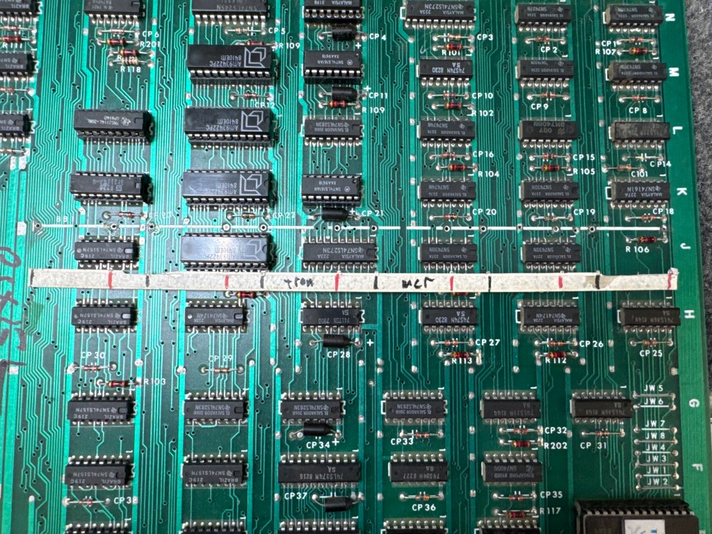 The video board had some prior work on 161 counters and they were involved with the motion objects. After seeing the cap hack for the bus bar, I was fixated on prior work. I stopped and beeped out all the lines to make sure things were connected (they were). Testing in this area finally brought me to the offending chip.