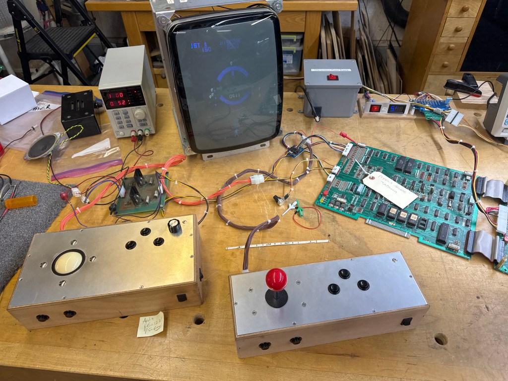 During burn in testing, it started acting up. The game would sometimes work, sometimes not.. I was getting a few graphics glitches. After power cycle testing, etc.. I tracked the issue to a partially failing sound chip. Performing the sound testing revealed a number of missing and corrupted sounds. Replacing it corrected the sounds, and seemed to correct the graphics glitch and the random board failures. The chip is attached to a sound data bus.. If it was corrupting things – it could have effected the Z80 which is in communication with the main CPU board. Can’t confirm it 100%.. But the stack has been stable once the sound processor was replaced.