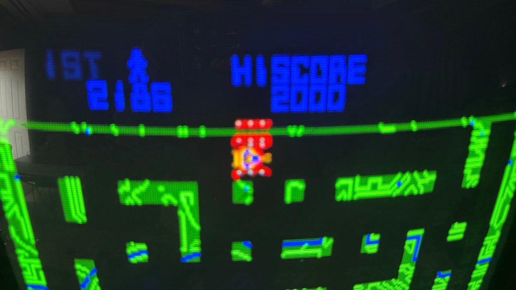 Lines across the color bars on this screen and the tank motion object would break apart at times. MCR boards have a feature that I love.. The FREEZE dip switch.. I’ve used this on other games (Star Wars, DigDug, etc..) when available.. Freeze allows you to stop the game in its tracks during an issue and you can look for the failing component. This particular issue took a while to hunt down.