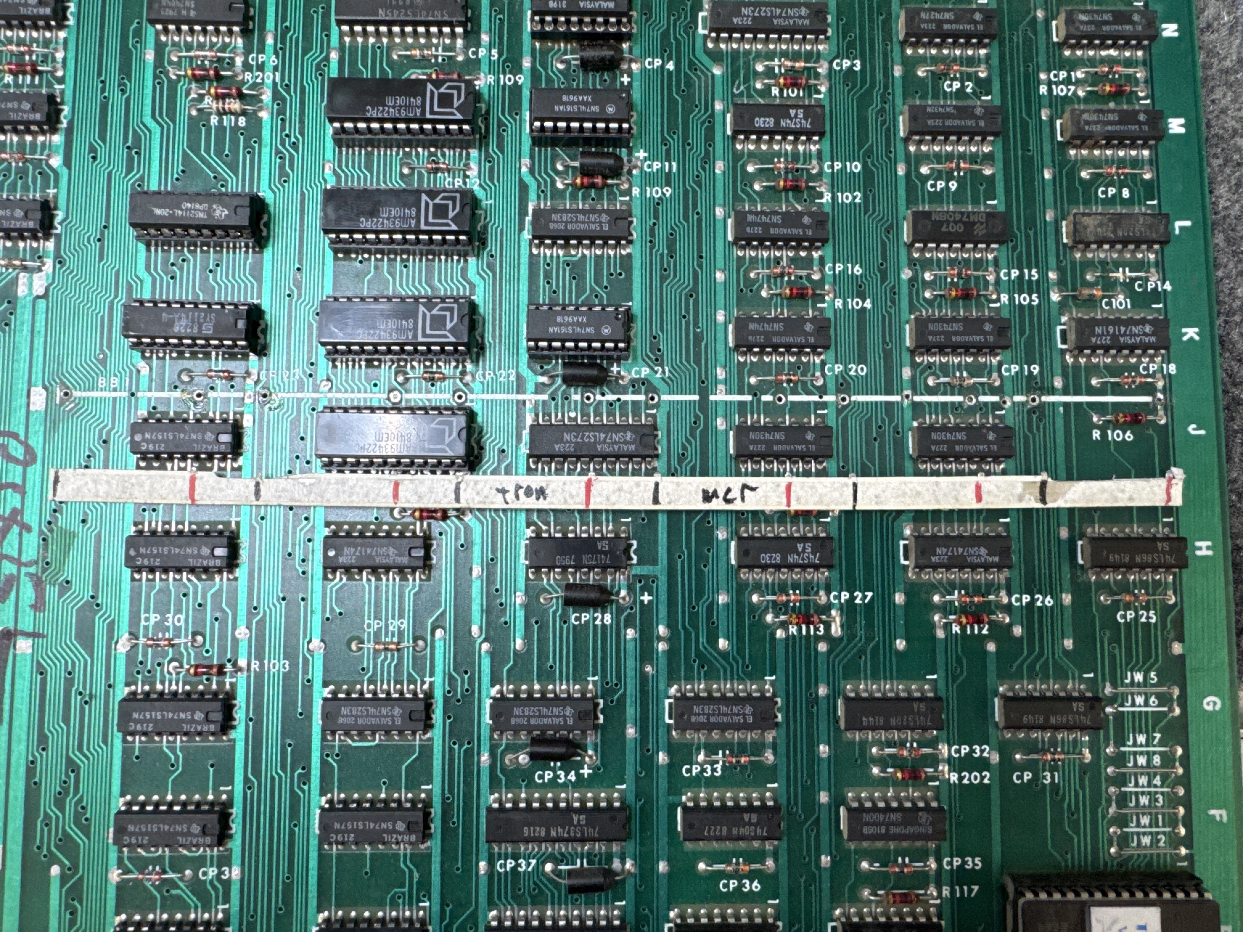 The video board had some prior work on 161 counters and they were involved with the motion objects. After seeing the cap hack for the bus bar, I was fixated on prior work. I stopped and beeped out all the lines to make sure things were connected (they were). Testing in this area finally brought me to the offending chip.
