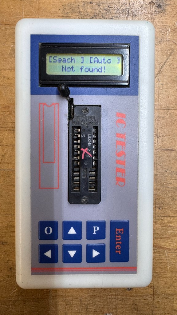 Now that I could get it all connected up and had clean chips. I connected the tester and sorted all of the EPROMs into their correct sockets. They verified correctly now that they were clean and in the right spot. RAM also verified too..