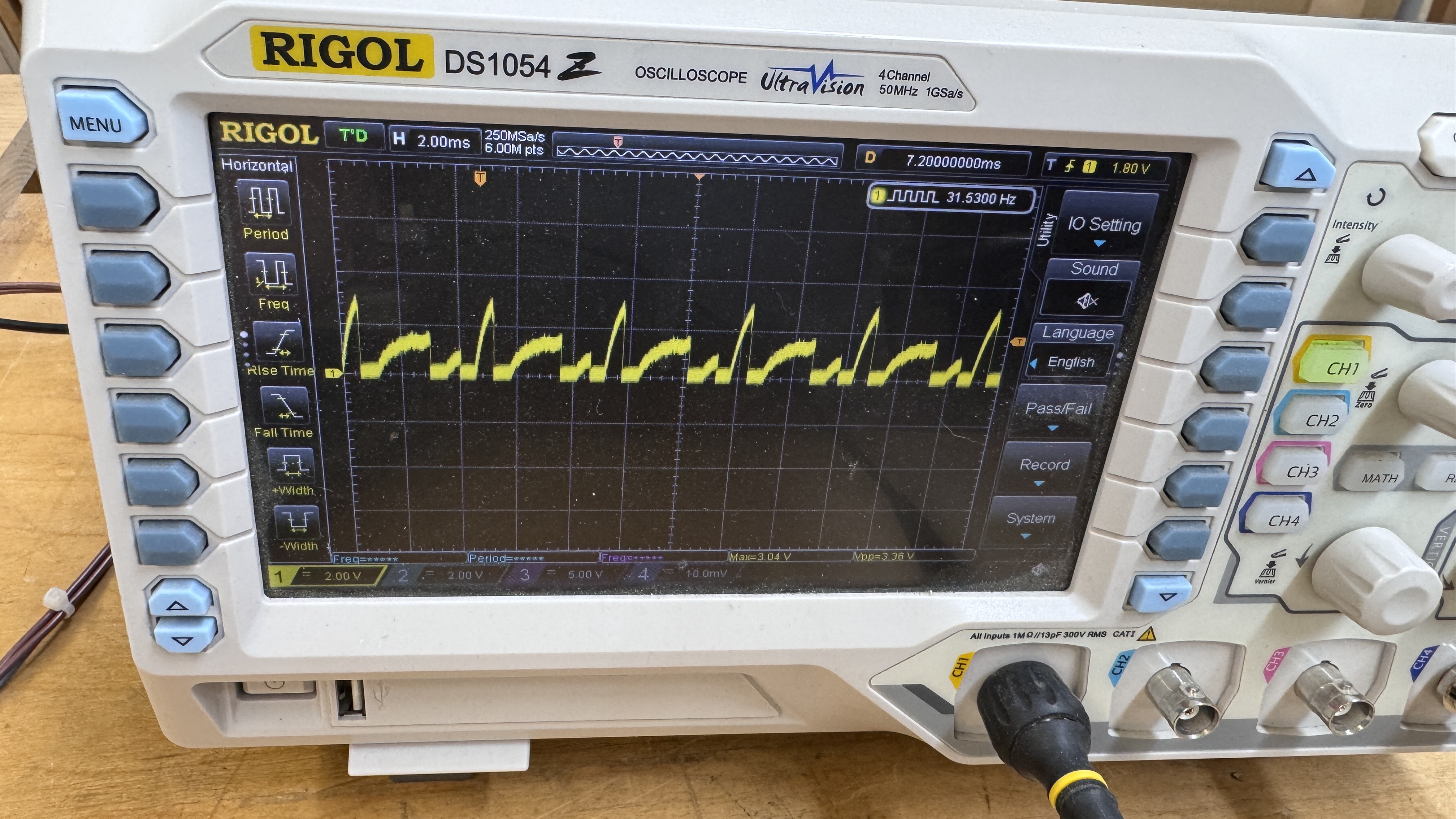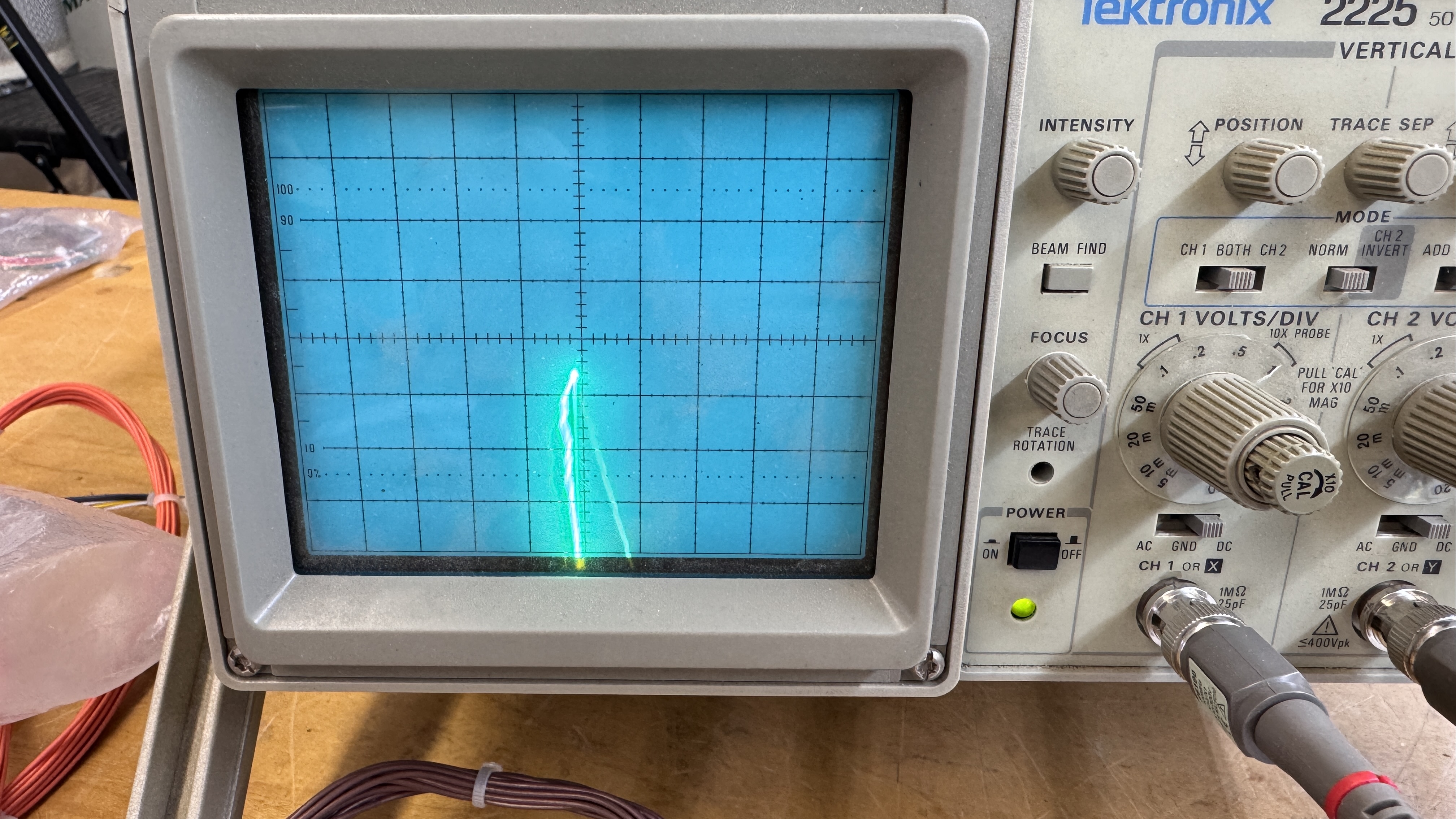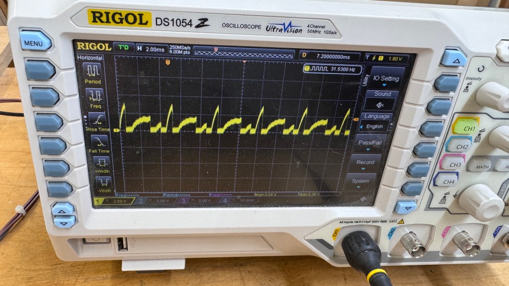 Tempest sets almost always have cold solder joints. Part of the inspection is to identify and reflow all of them. Powered on, this was the first image on the scope.