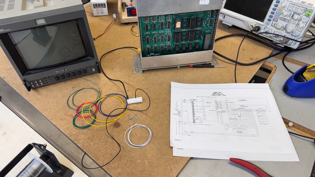 Power connections were the same to the cage – but the controls and video were 100% different from Gorf. More bench adapters.. which I really kinda like making.