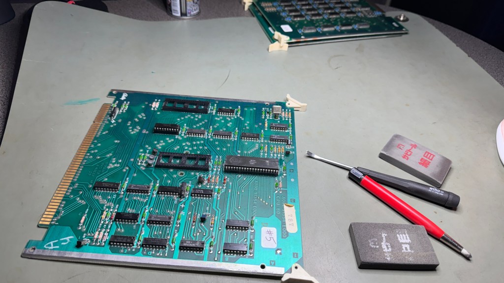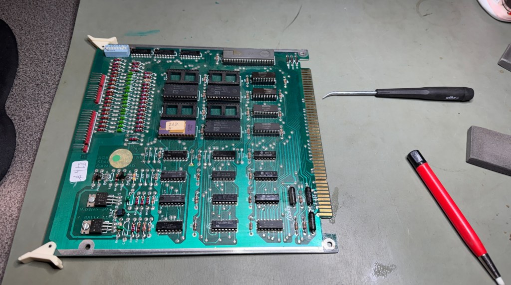 Also thanks to @Jacklick on KLOV – he has a Video Series on Gorf from a few years back that provided me with some familiarity with the setup since this was my first CardRack game. I watched most (all?) of them while working on my cabinet and cleaning chips.