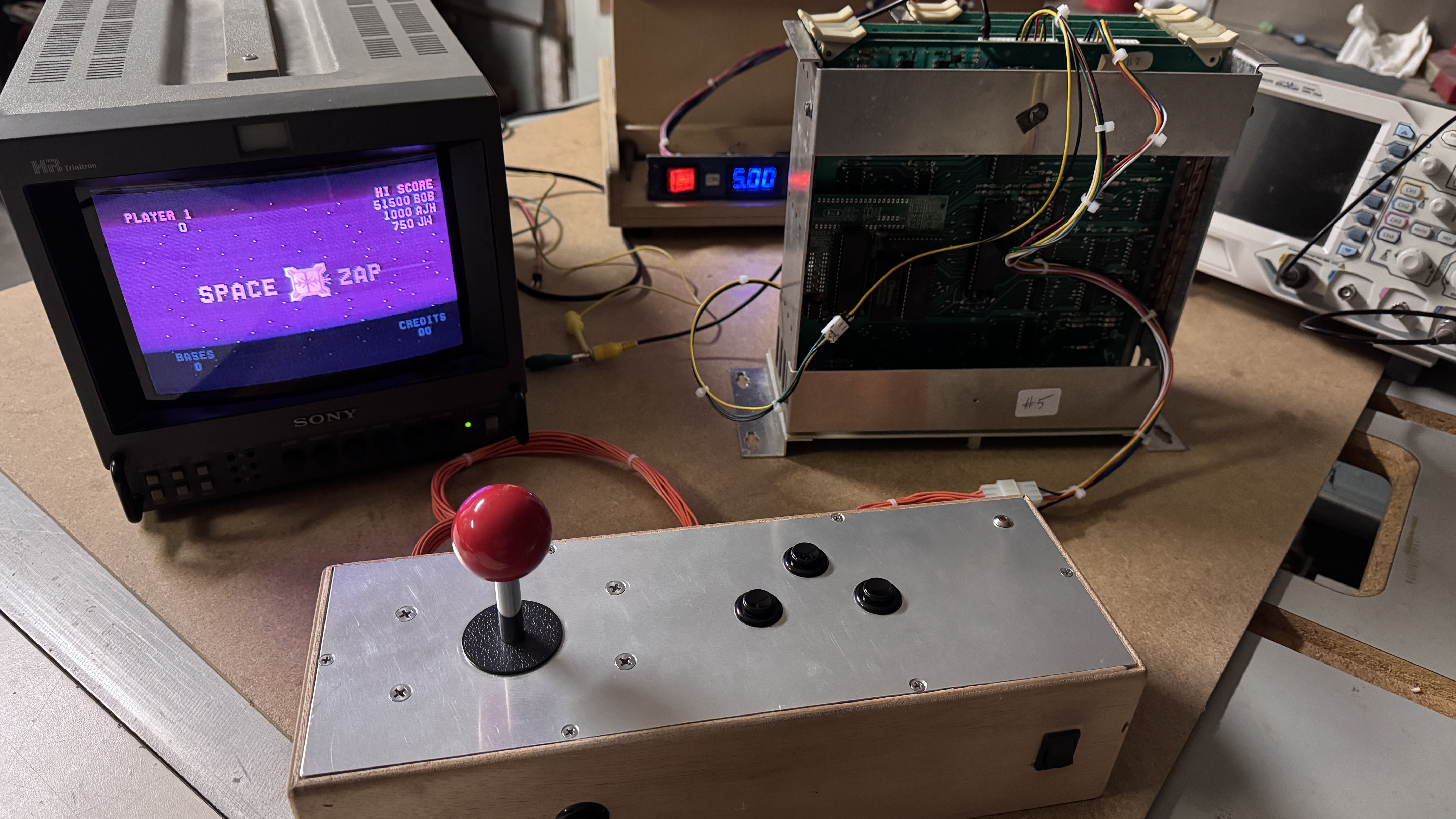 Space Zap is wired to my bench (single) joystick controller. Which is a huge cheat. You can Zap lighting fast with a stick vs the buttons of the original game.