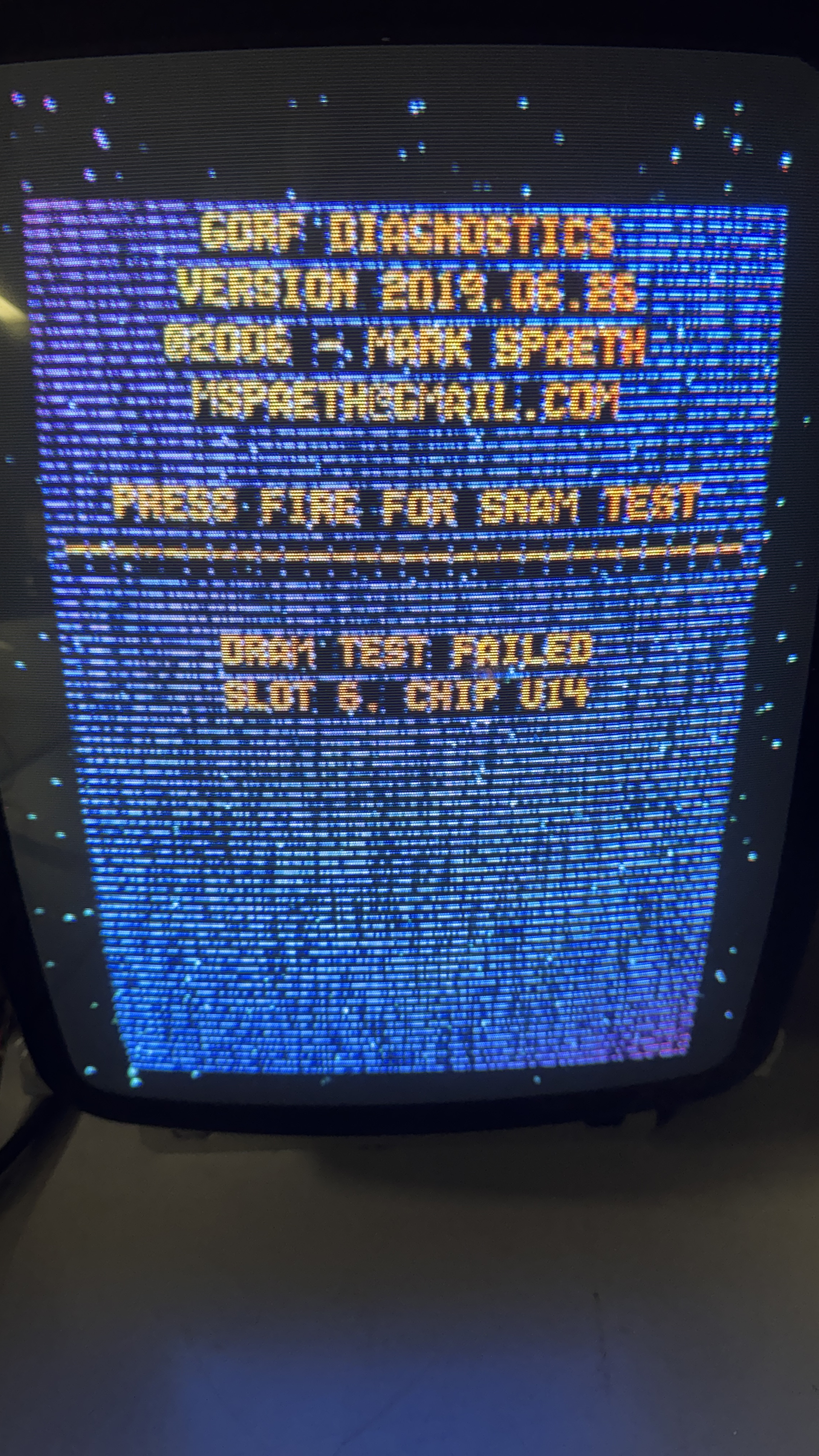 One of the RAM cards caused the bad video from above. I planned on using the FPGA Catbox to do some testing, but wanted to try the Test Roms (thank you @HudsonArcade). Found a bad RAM@U14 on one of the cards and replaced it.