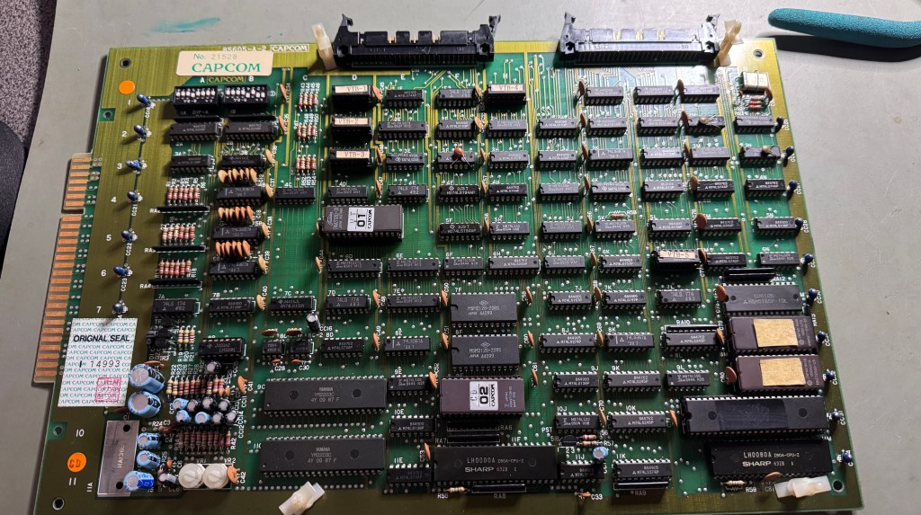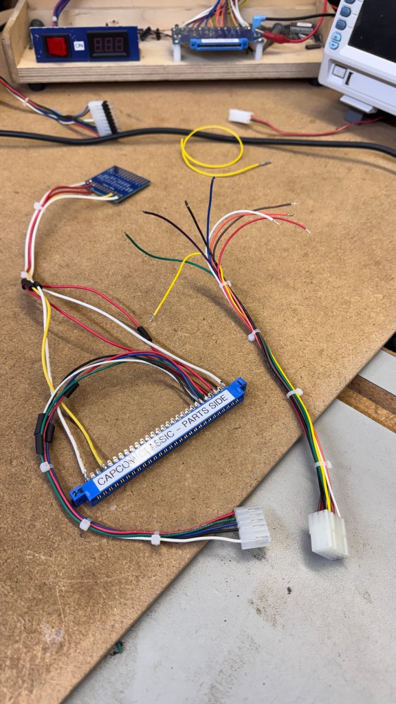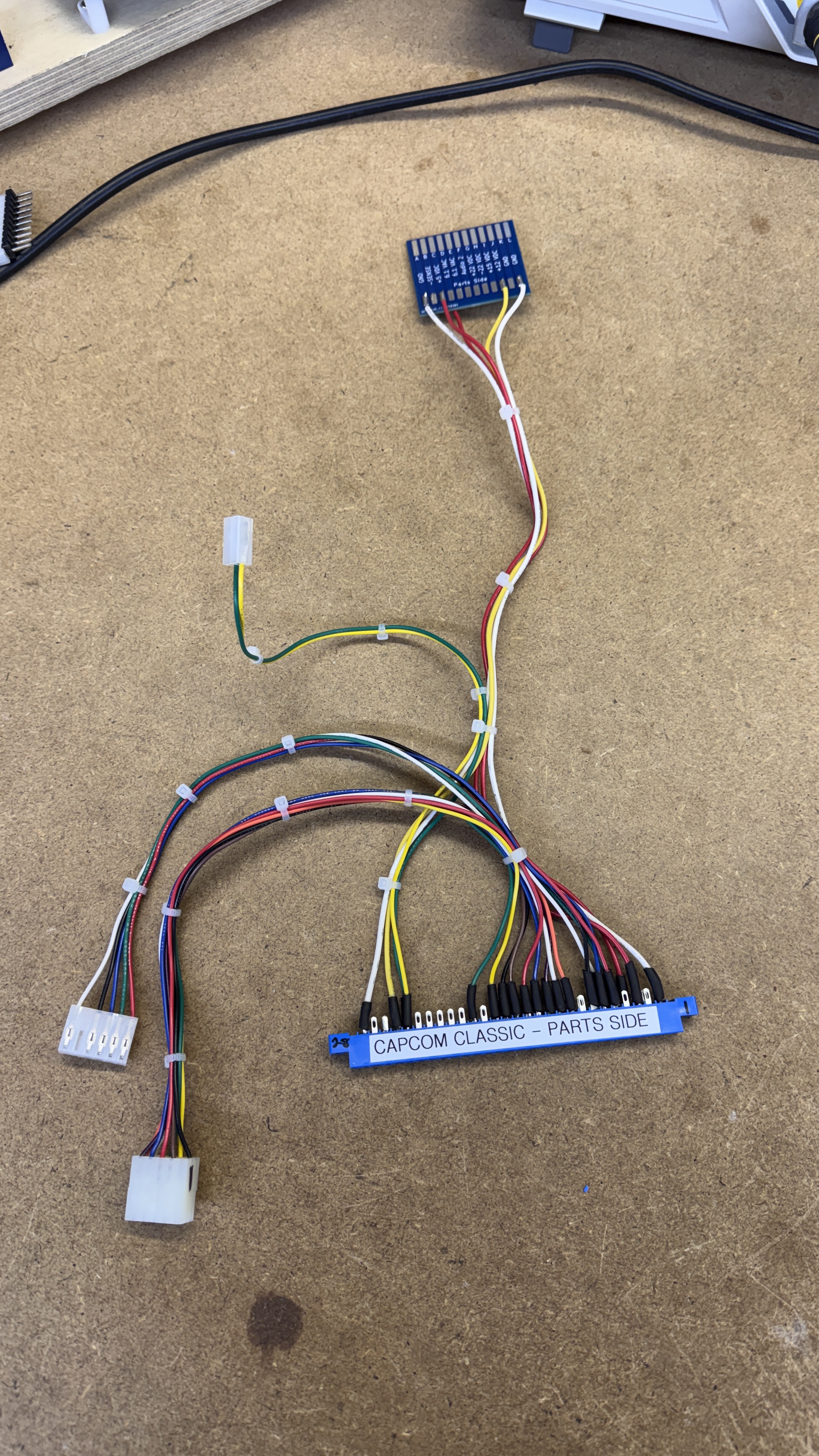 The good news is that the Capcom Classic pinout is used on a number of boards other than commando. I initially started with an adapter that went to the Commando filter board – which is game specific.. removing it revealed a 56 pin connector which works on 9 titles. I could have ordered a Jamma adapter – but my bench setup is simpler for me to work with vs. an adapter to an adapter in most cases.