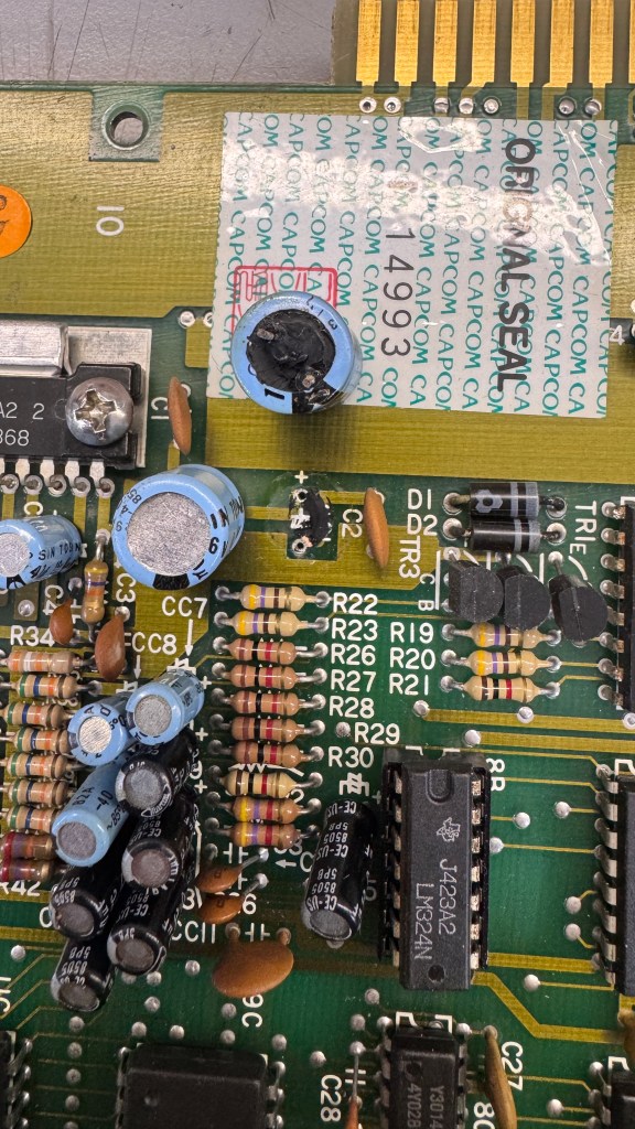 Here is the CPU board from the stack getting chips cleaned. The reported symptom was no audio. This set was very clean to begin with, but it’s part of the service and since it is going into an arcade – better to perform full board maintenance.