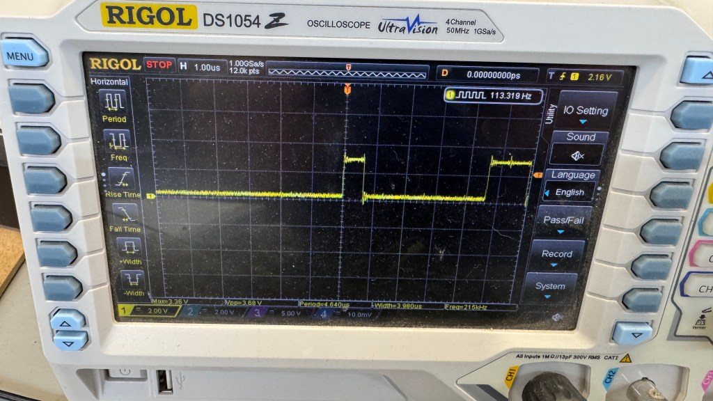 One last idea because I really didn’t not trust this chip – I used a second probe and tested the lifted leg output vs. the actual one on the scope. (I wish I got a picture of it) Most of the signal was the same but one part was different, just enough that I pulled the chip.