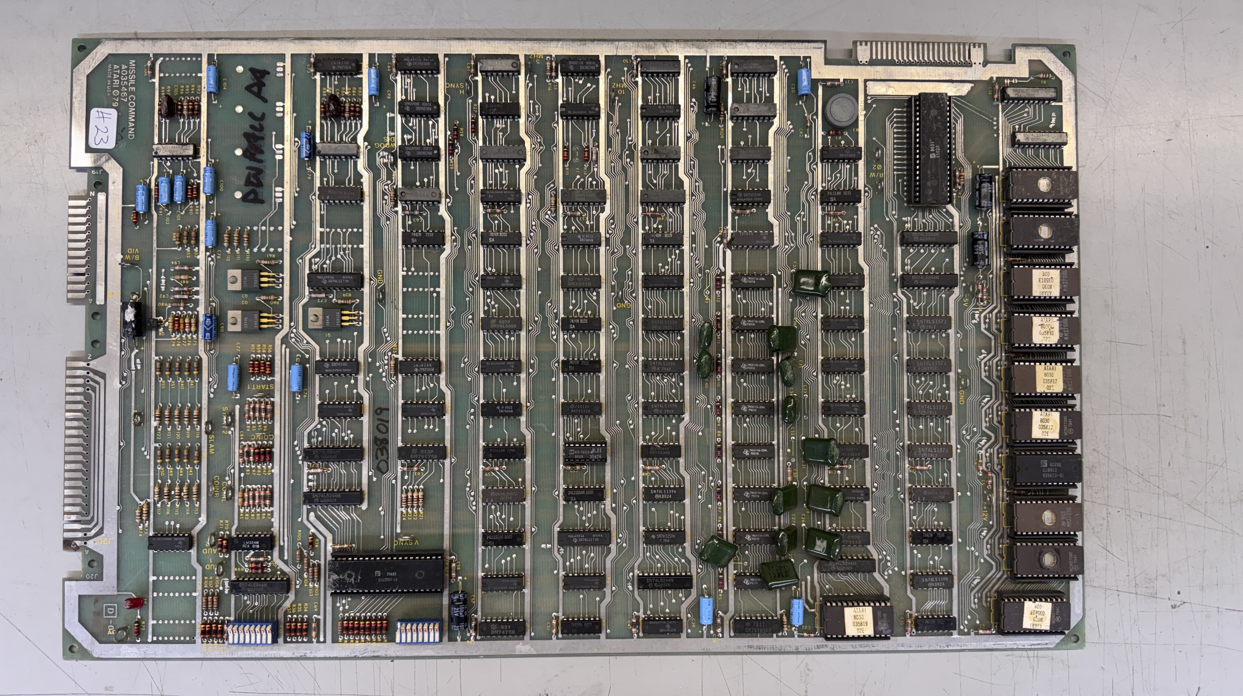 This board wasn’t as dirty as #20 – but I washed it because the ROMs also were quite “crunchy” going into and out of the sockets. After that on the tester I had 1 bad ROM (replaced it) added a label to one of the originals and replaced another because of a brittle leg that broke during cleaning.