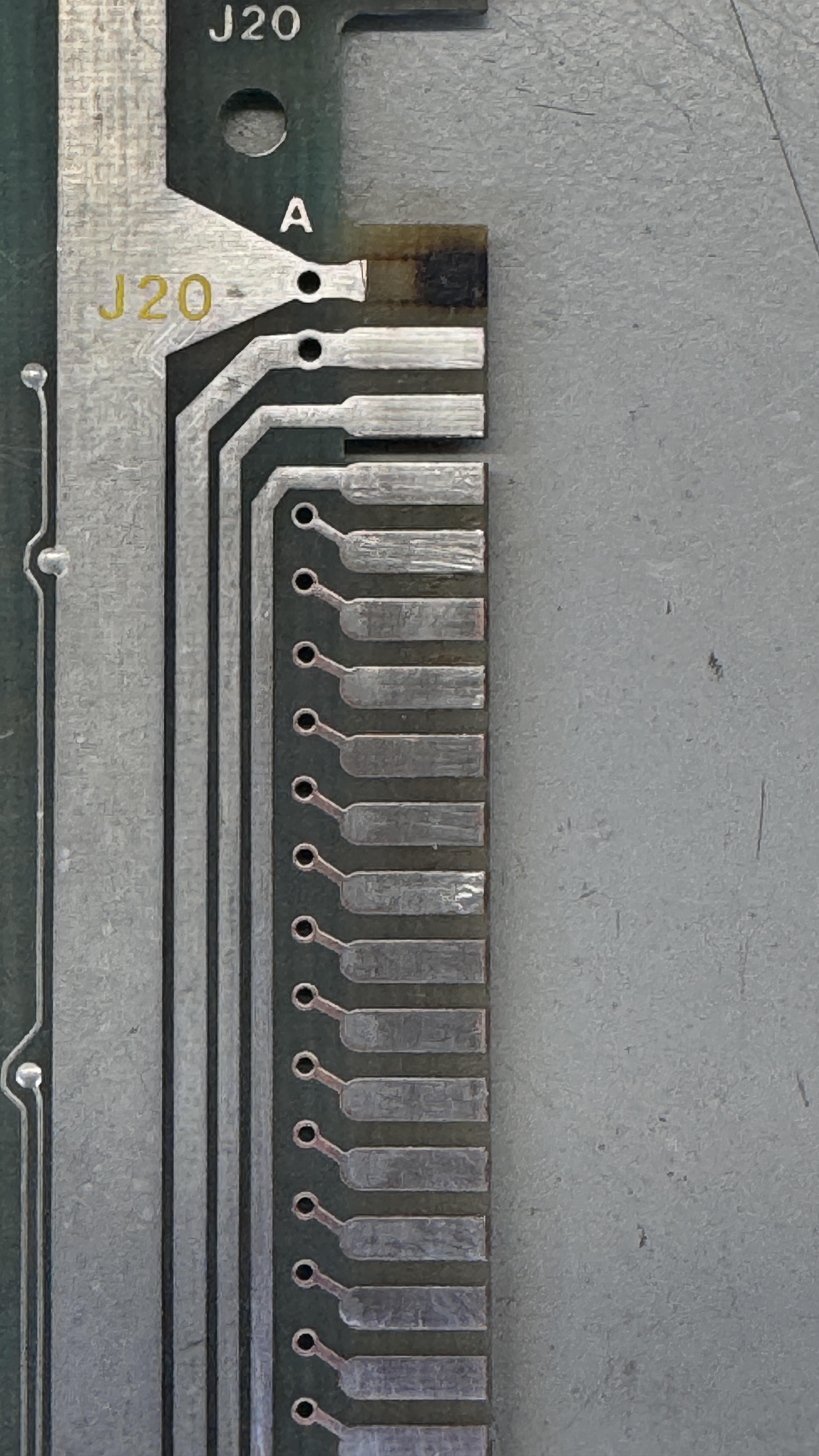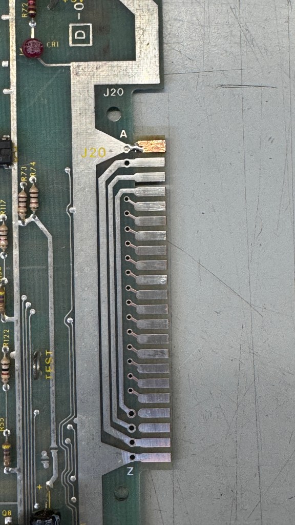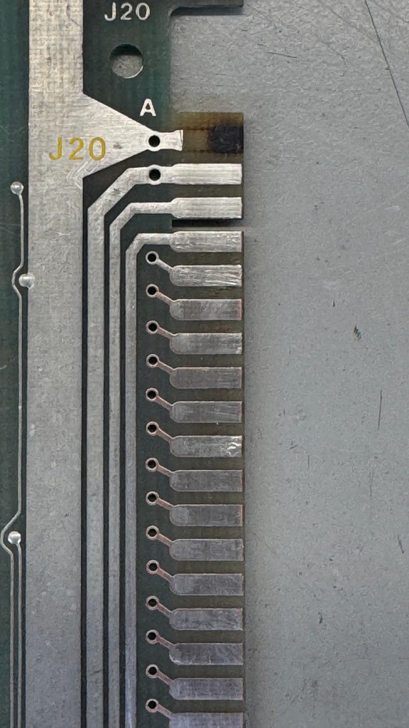 The edge connector had been sanded/cleaned a number of times. I had to clean it again – but some copper was coming through. It got retinned.