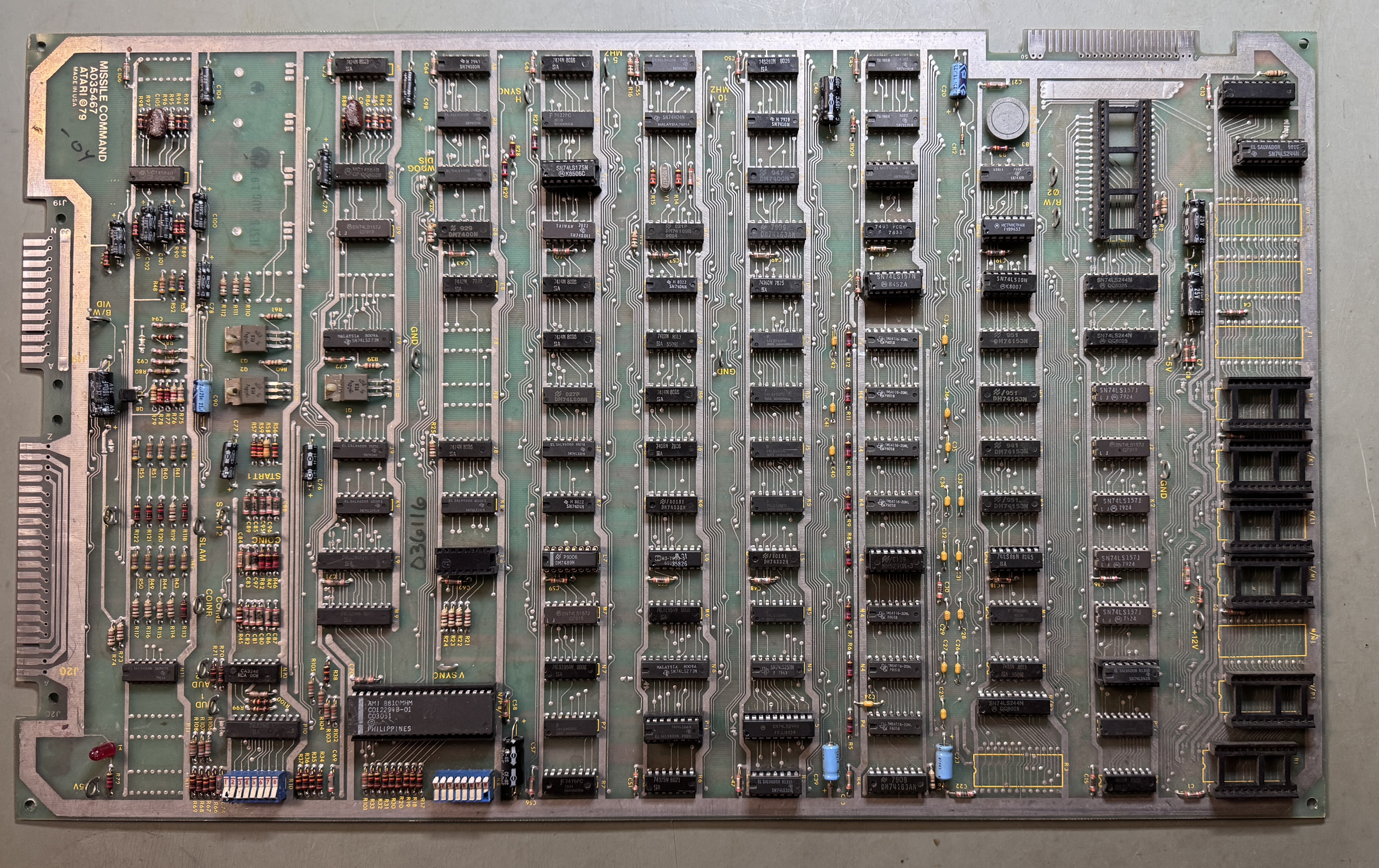 Owner sent this in with an ARII that they were having issues with. Wanted the board and ARII checked. The ARII DID have problems and I rebuilt that.. The Missile Command worked fine when I connected it all up.. It is for a machine in an arcade and I was asked to ‘look it over’.