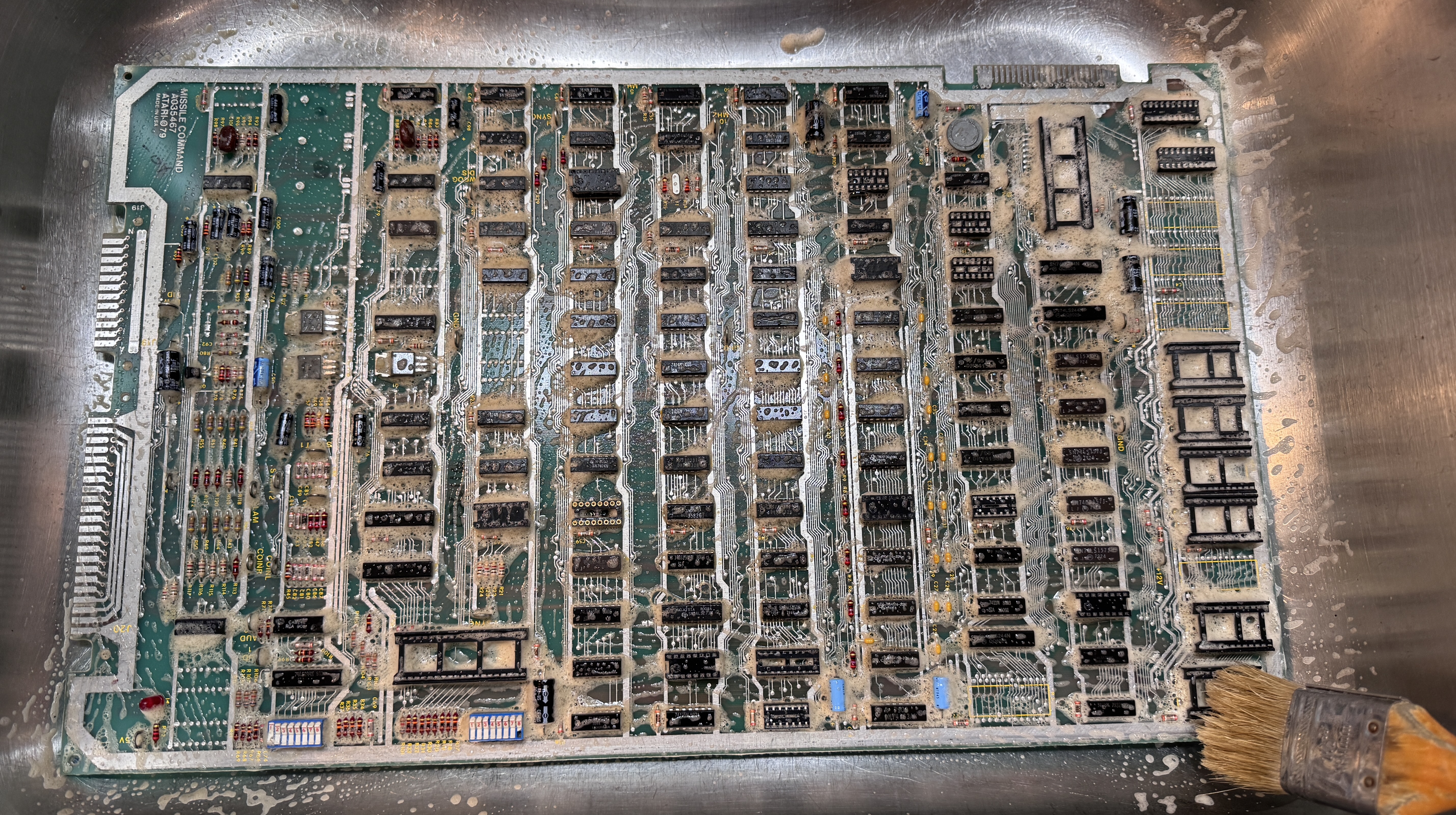 It was also pretty nasty.. So into the sink. Krud Kutter is by far the best cleaner for these. Spray a lot on with the board dry. Wait 5 minutes and brush with a soft bristles. Rinse and I dry using compressed air. I find that Krud Kutter cleans the contacts in the sockets better than you would expect.