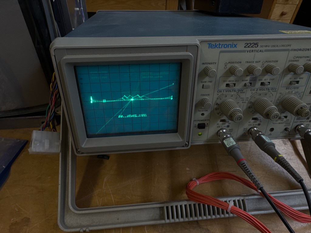 What’s left? The wiring harness that I built? It’s pretty minimalist. However – I even swapped the X,Y,Z wiring going to the CRT.. No difference.