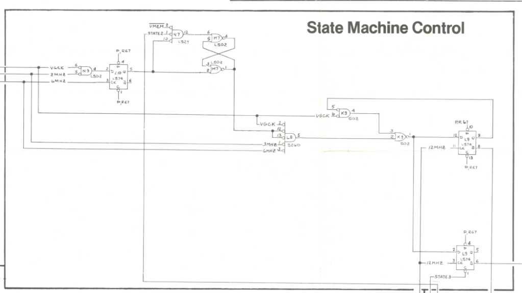 After checking may different parts of the state machine, vector timer and data shifter. This part just didn’t seem right.. The OP2 signal would sometimes come in, but STATCLK and SCALELD and the 191 counter at F10 was doing very little.
