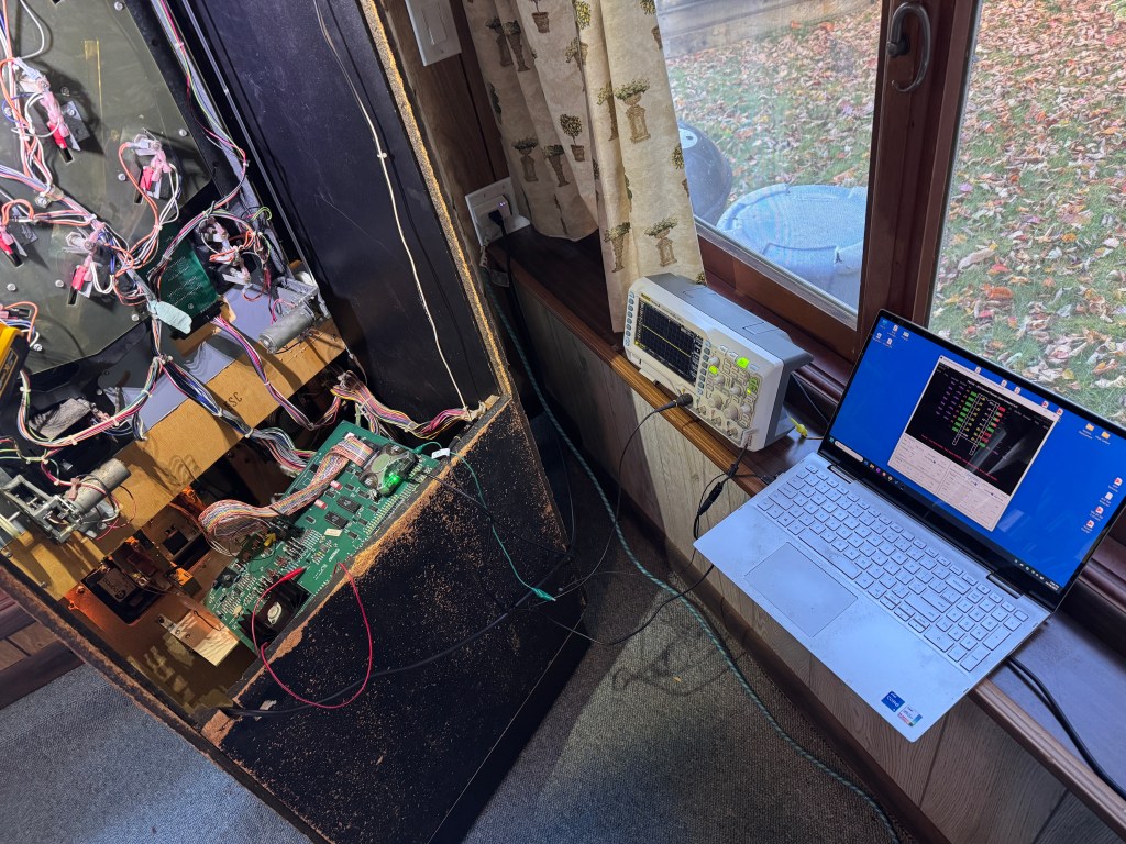 Normally I’d make a bench adapter and plug into my test harness. This one is different – I’d have to essentially build a bench version of the game and at minimum simulate the motors and end stops.. It would have been too much for aboard I’ve only been asked to fix once..