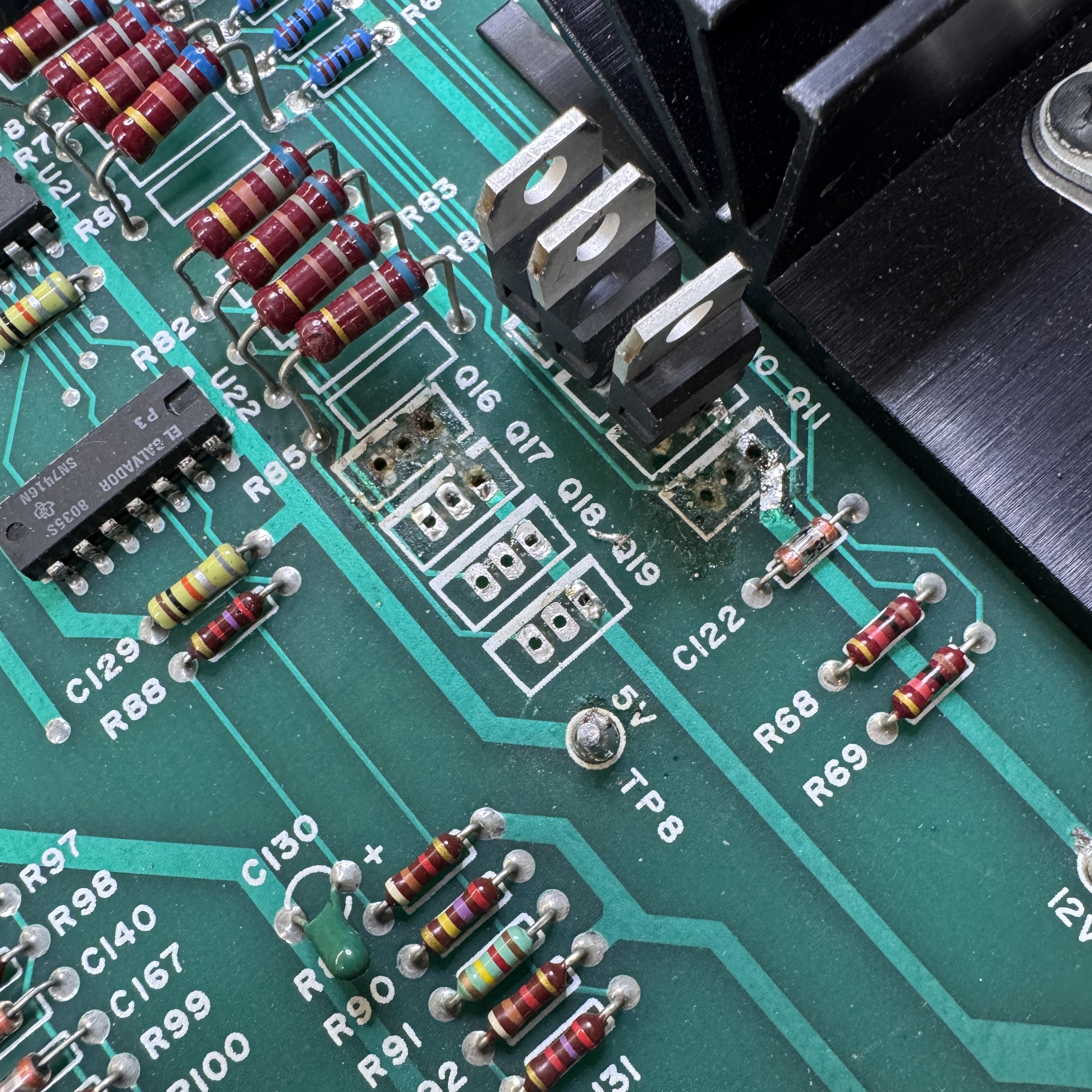 This PCB had a number of issues – the biggest one was that at some point – someone decided that the transistor bank that did the heavy lifting had an issue and destroyed that section of the board.